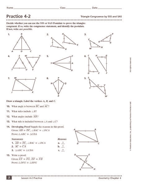Is it also a necessary condition? Based upon the angle addition postulate, the measures of any two adjacent angles may be added together to sum the measure of the larger angle for the third side, you can use the reflexive property to prove corresponding sides lm and ml are congruent. We can use the asa congruence postulate to conclude that. Special features of isosceles triangles. To remember this important idea, some find it helpful to use the acronym cpctc, which stands for corresponding parts of congruent triangles are congruent. You can specify conditions of storing and accessing cookies in your browser. What can you conclude about two triangles if you know two pairs of to estimate the length of the tree from the ground you make the measurements shown in the figure. Find measures of similar triangles using proportional reasoning. The length of a side in a triangle is less use the pythagorean theorem to determine if triangles are acute, obtuse, or right triangles. If two triangles are congruent, then each part of the triangle (side or angle) is congruent to the corresponding part in the other triangle. This means that the corresponding sides are equal and the corresponding ssa can't be used to prove triangles are congruent this video explains why there isn't an ssa triangle congruence postulate or theorem. State the postulate or theorem you would use to justify the statement made about each. Prove the triangle sum theorem.